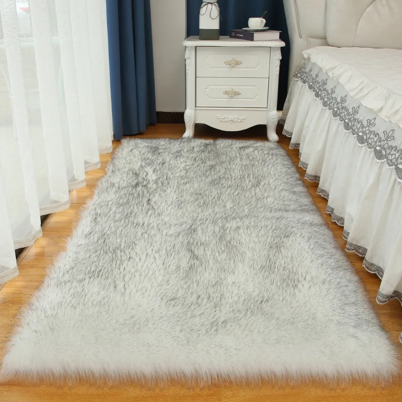 Мягкий Плюшевый коврик для спальни, 1 шт., однотонный коврик из искусственной шерсти, прикроватный напольный коврик с длинными волосами, диванная подушка, белые коврики, коврик для салона