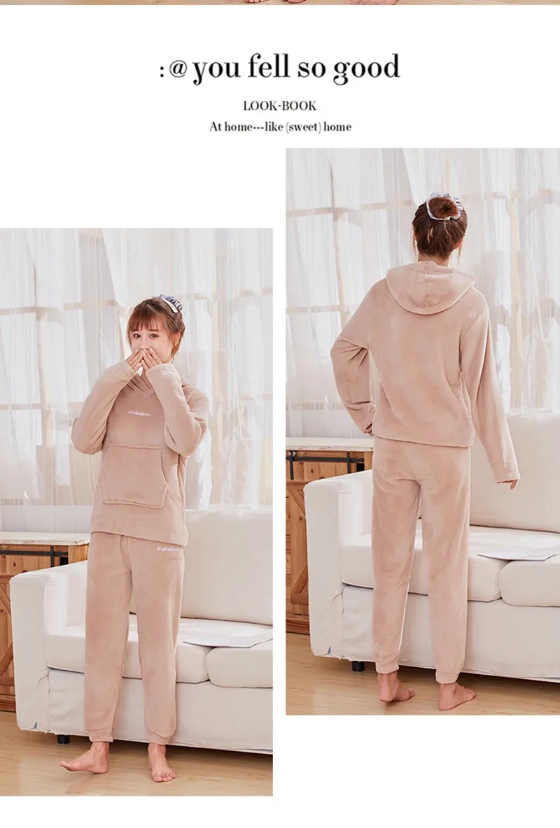 Женский зимний пижамный комплект, Толстая теплая фланелевая Домашняя одежда, зимняя Домашняя одежда, Женские Фланелевые пижамы, домашние штаны, теплая Домашняя одежда, костюм