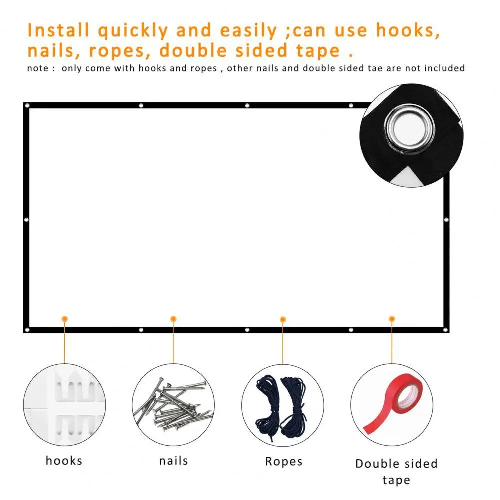 Компактный экран для проектора H80C, складной портативный экран из плотного полиэстера для кино, 80 дюймов 16:9, простая занавеска для проектора для помещений