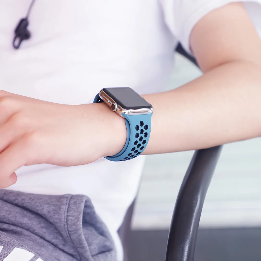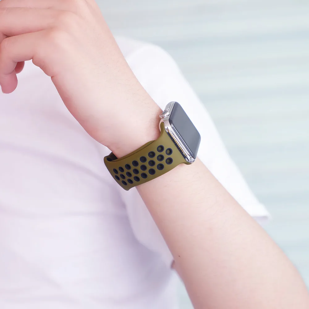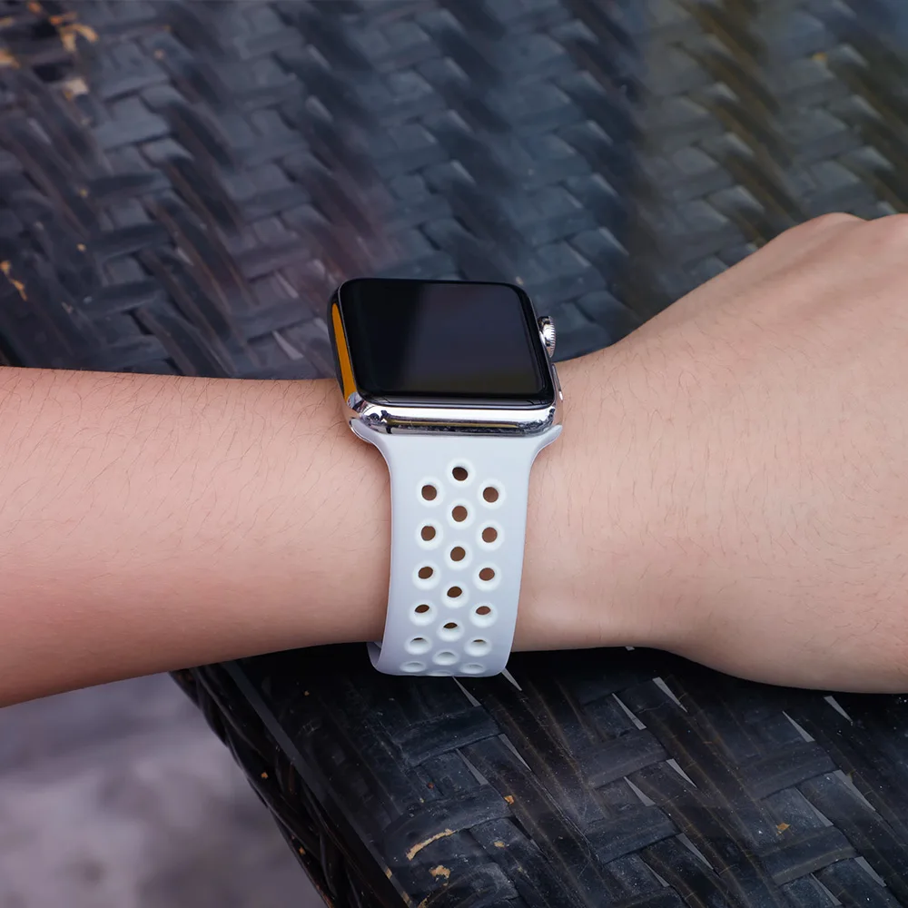Силиконовый ремешок для Apple watch band 44 мм/40 мм iWatch band 42 мм/38 мм дышащий спортивный браслет ремешок для часов Apple watch 4 5 3 2 1
