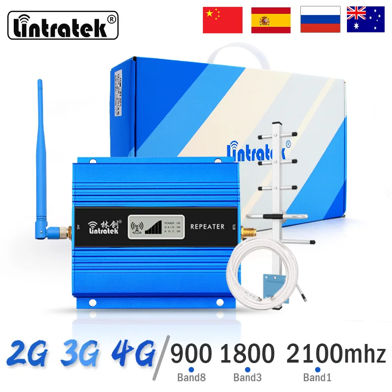 Lintratek 2G 3G 4G Сотовый усилитель GSM 900 LTE 1800 WCDMA 2100MHz сеть передачи данных сотовый телефон усилитель полный комплект повторитель + антенна