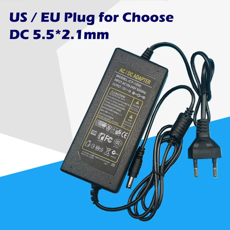 Штепсельная Вилка европейского и американского стандарта, переменный ток 110 В 220 В в постоянный ток 12 В 5 А, зарядное устройство 60 Вт для светодиодной ленты, монитора, CCTV, преобразователь, адаптер, переключатель
