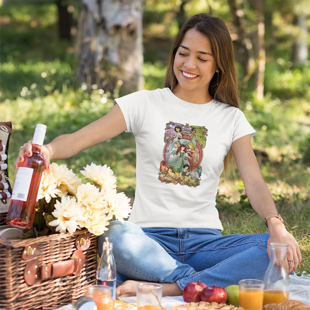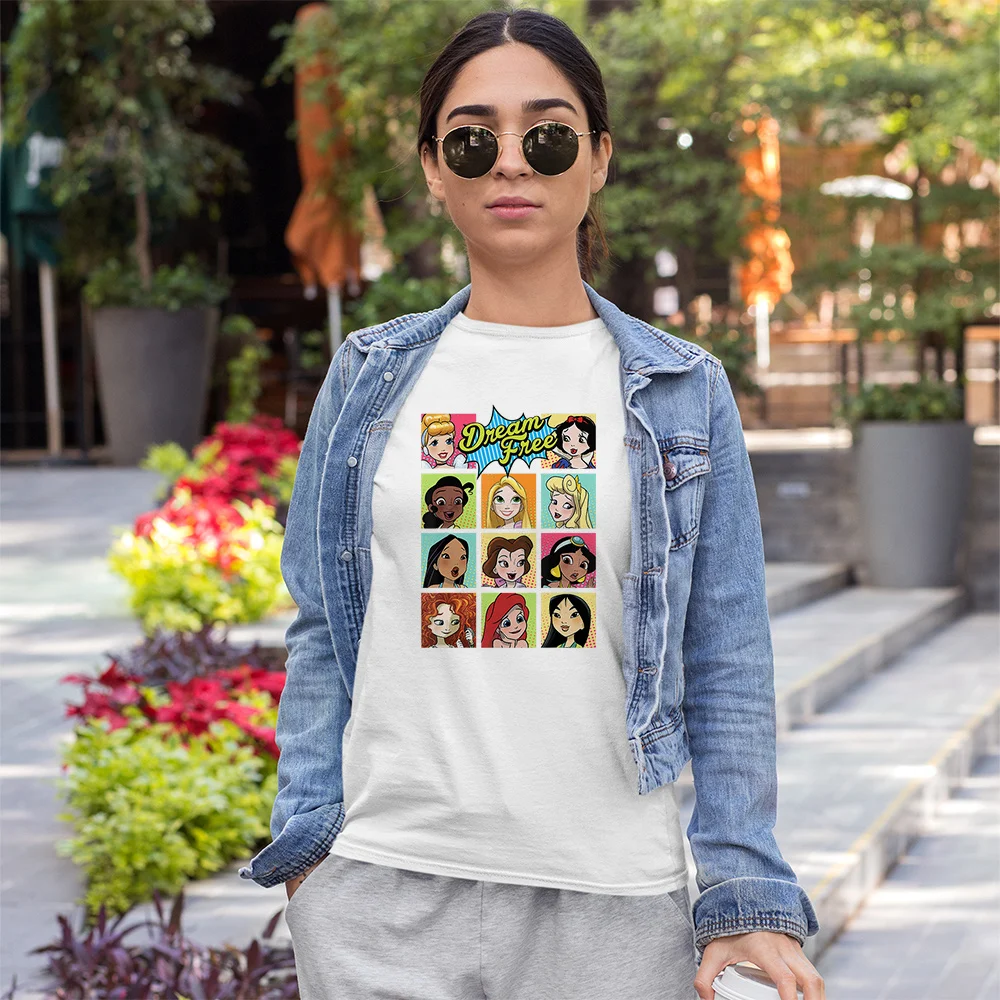 Футболка женская Kawaii для девочек-подростков, футболка Disney, аниме, Белоснежка, Белль, Ариэль, Жасмин, Арло, принцесса, топ с рисунком, женская одежда