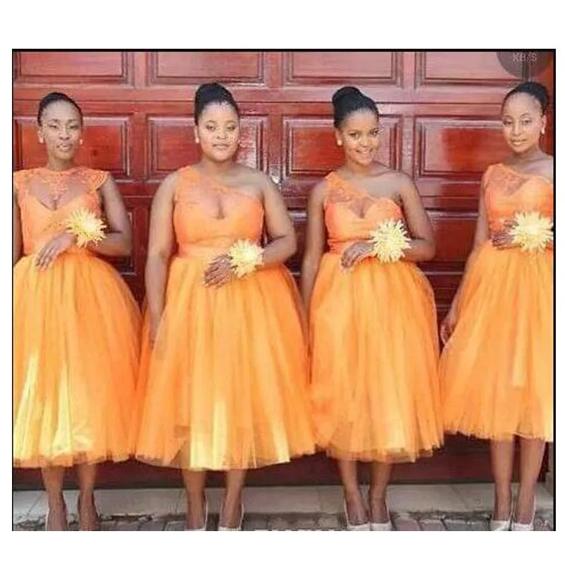 Женское вечернее платье подружки невесты, короткое оранжевое платье подружки невесты, 2022