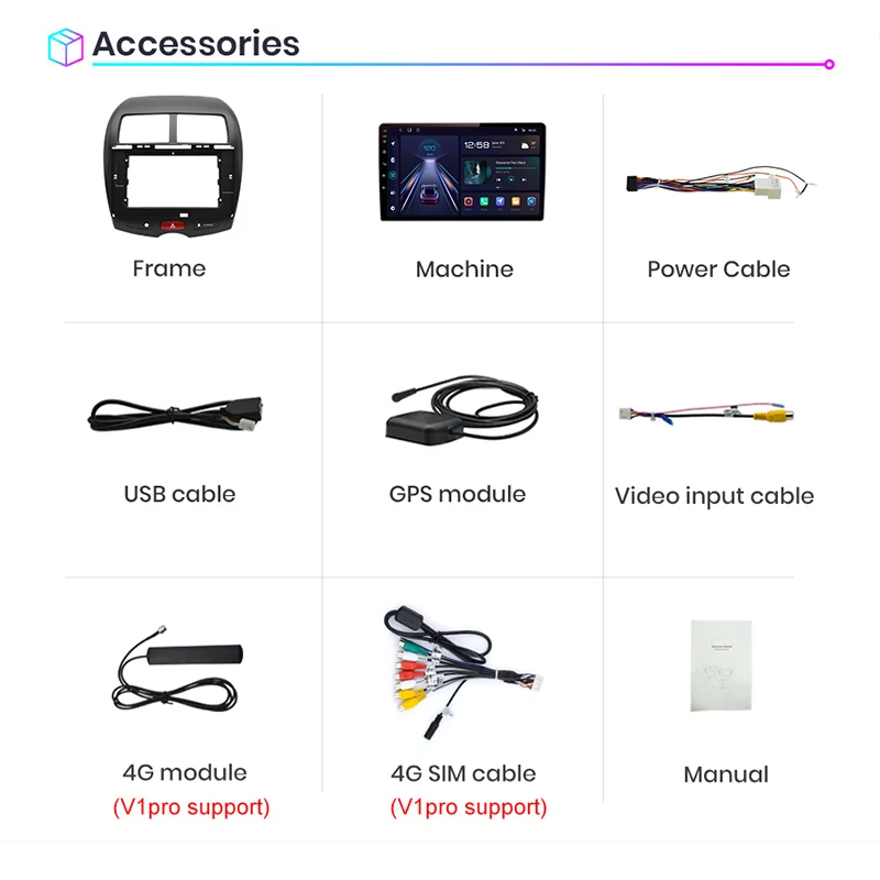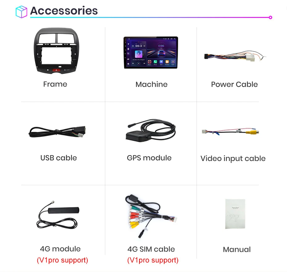 2. Встроенный Carplay/ Android авто: версия V1/V1Pro поддерживает, просто используйте кабель для подключения телефона, стабильный и простой в использовании;