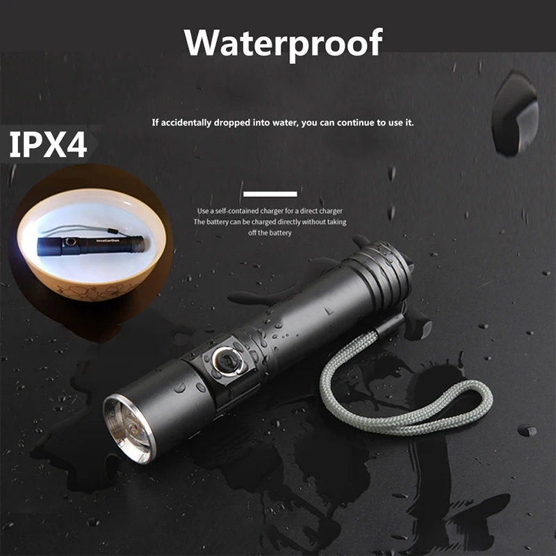 Задний магнит XM-L T6 со встроенным аккумулятором 18650, светодиодный фонарик, светильник фонарь, масштабируемый алюминиевый водонепроницаемый фонарь для кемпинга