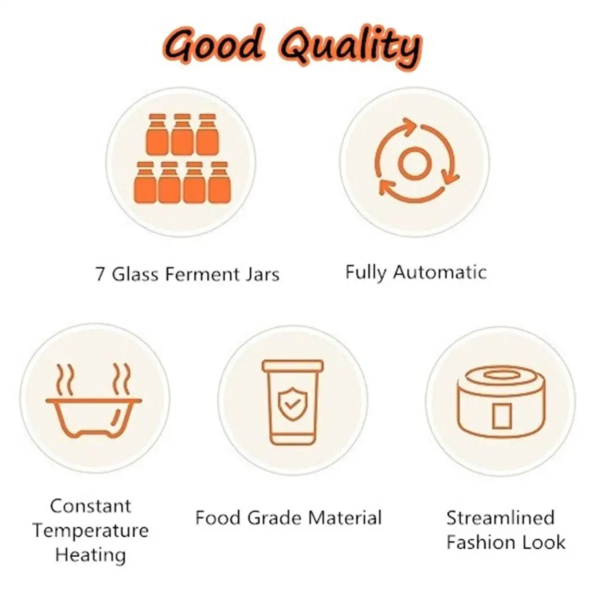 Информация о продукте:Характеристики:Цвет: белыйМатериал: вкладыш из нержавеющей стали + высокая подкладка из боросиликатного стеклаРазмер: 228x148 ммНоминальное напряжение: 220 ВЕмкость: 1,5 лМощность: 15 ВтВнешний вид: обтекаемый модный видОсобенности:1 вкладыш из нержавеющей стали + 7 стеклянных Ферментных банок;Полностью автоматический; Пищевой материал; Постоянная температура нагрева; Лучшее качество.Посылка включает в себя:1 * йогурт1 * Адаптер питания (в соответствии с различными странами, мы отправим соответствующий адаптер.)Примечание:-Из-за различных партий продукции детали продукта могут немного отличаться. Если вы хотите узнать разницу, пожалуйста, покупайте внимательно.-Пожалуйста, учитывайте разницу в 1-3 см из-за ручного измерения.-Из-за различных дисплеев и другого светильник, изображение может не отражать фактический цвет товара. Спасибо за понимание.