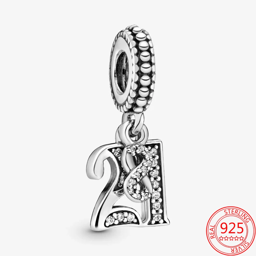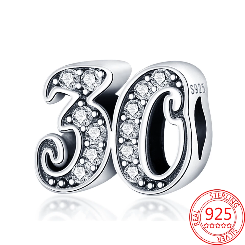Подвески-цифры из серебра 925 пробы для браслетов Pandora, 10 видов