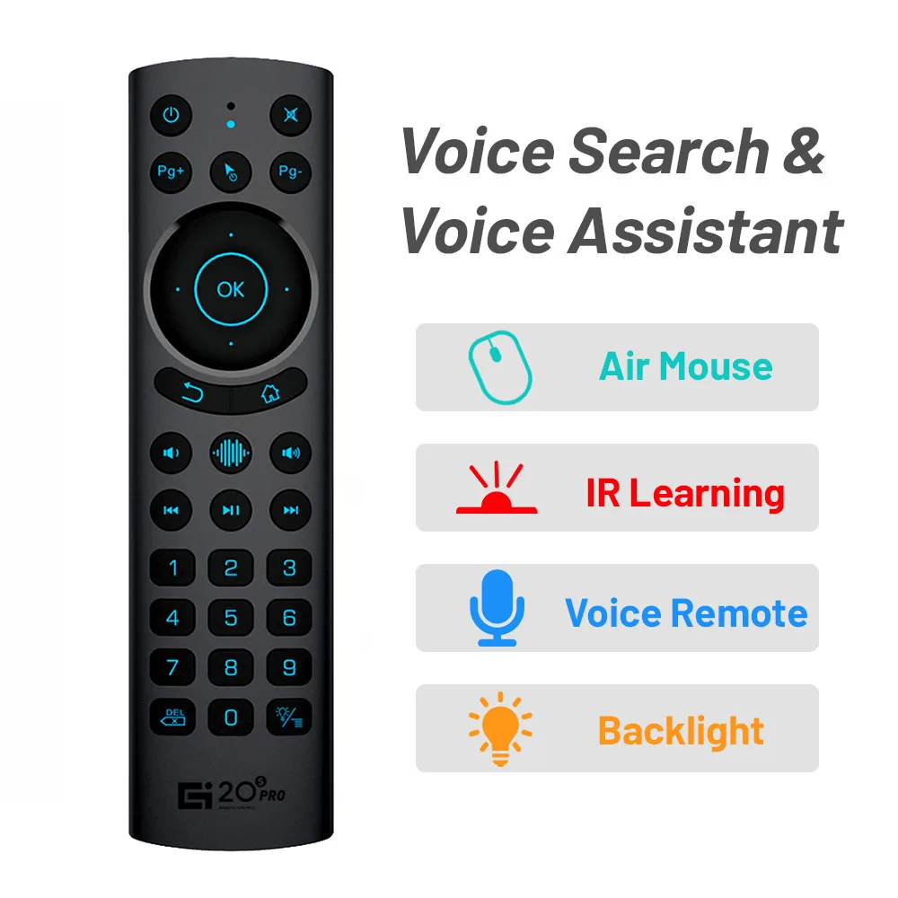 Если вы выберете ТВ-бокс с голосовым помощником air mouse, Ваша посылка будет включать G10S голосовую воздушную мышь, как указано ниже: Пожалуйста, обратите внимание, что в комплект не входит ИК-пульт дистанционного управления, голосовое управление имеет функцию ИК-пульта дистанционного управления