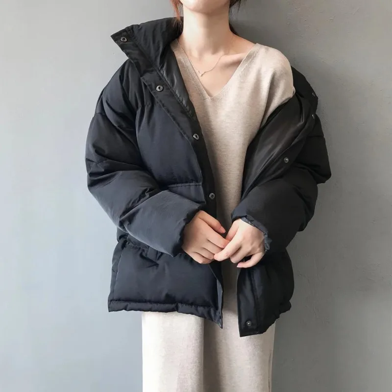 Женская Осенняя куртка 2021, повседневное однобортное Стеганое пальто из полиэстера, теплые женские парки, черная зимняя одежда в Корейском стиле