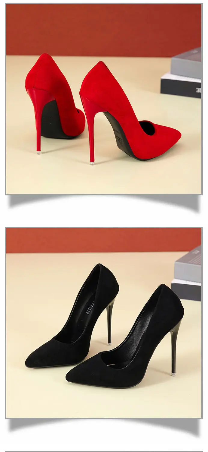 Туфли-лодочки женские на шпильке, заостренный носок, из флока, повседневная обувь для свадьбы, вечеринки, пикантная обувь на высоком каблуке, туфли-лодочки, 45