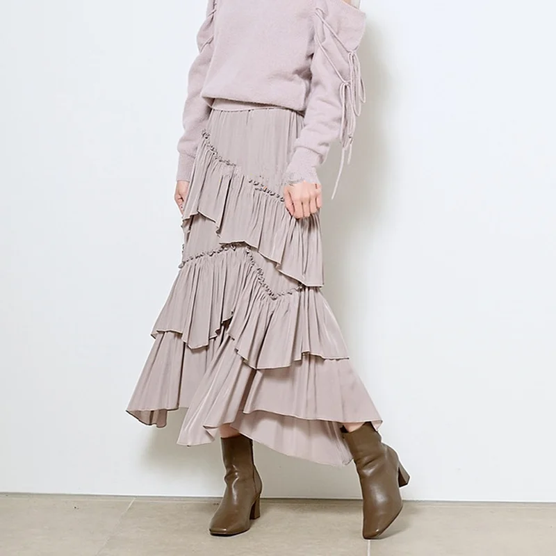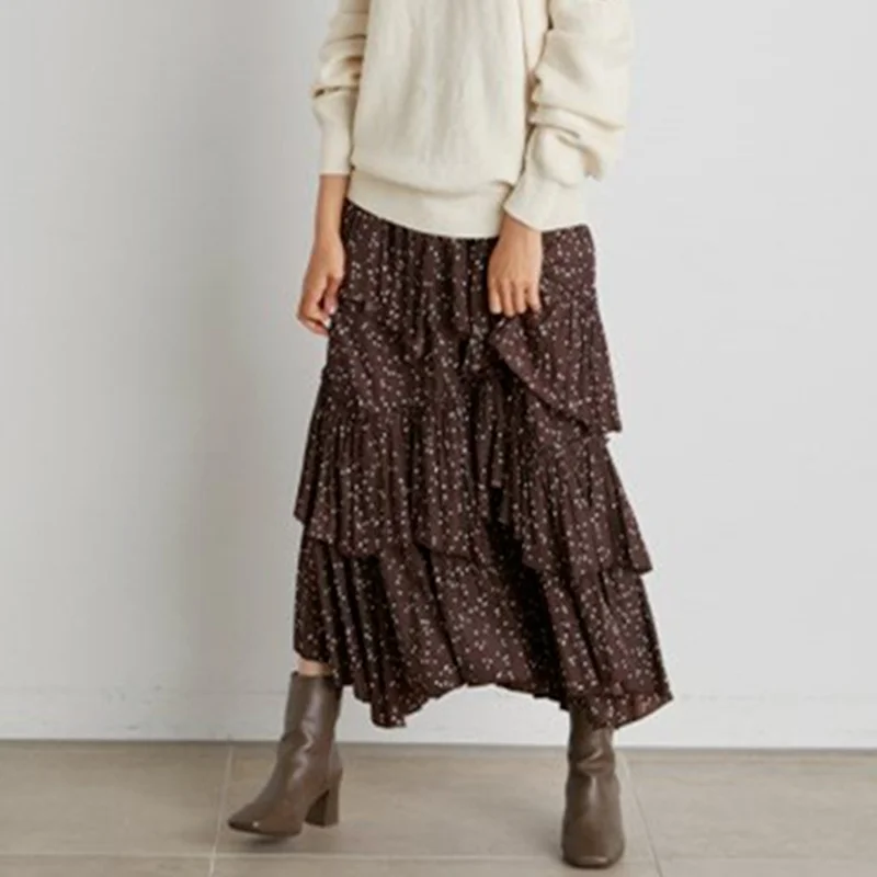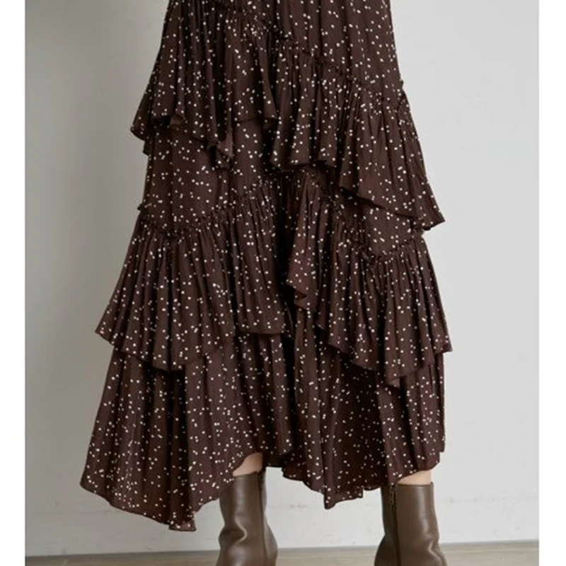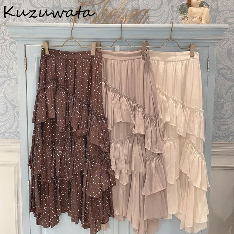 Юбка Kuzuwata женская с высокой талией, облегающая Асимметричная в горошек, с каскадными оборками, в японском стиле, Осень-зима 2021