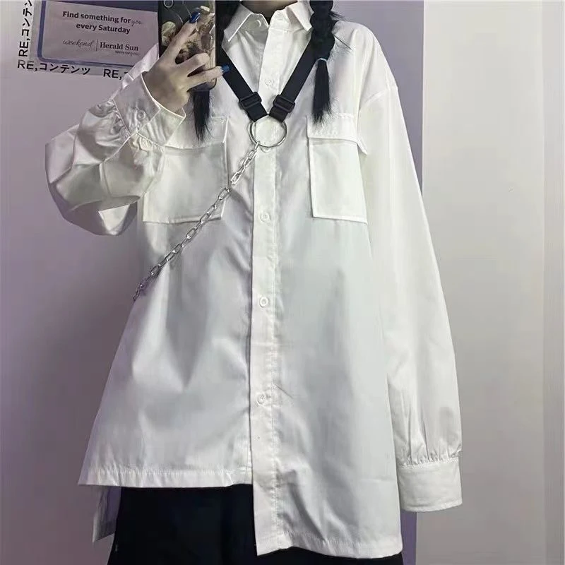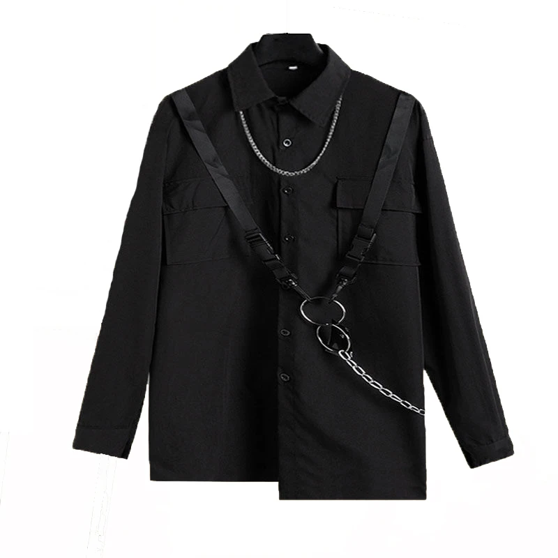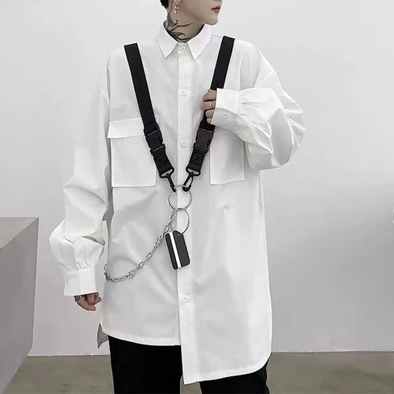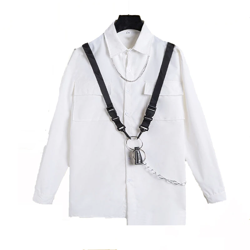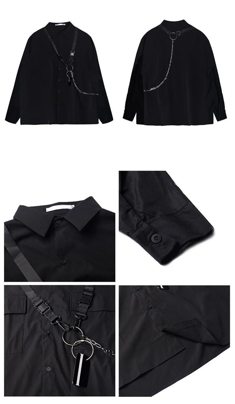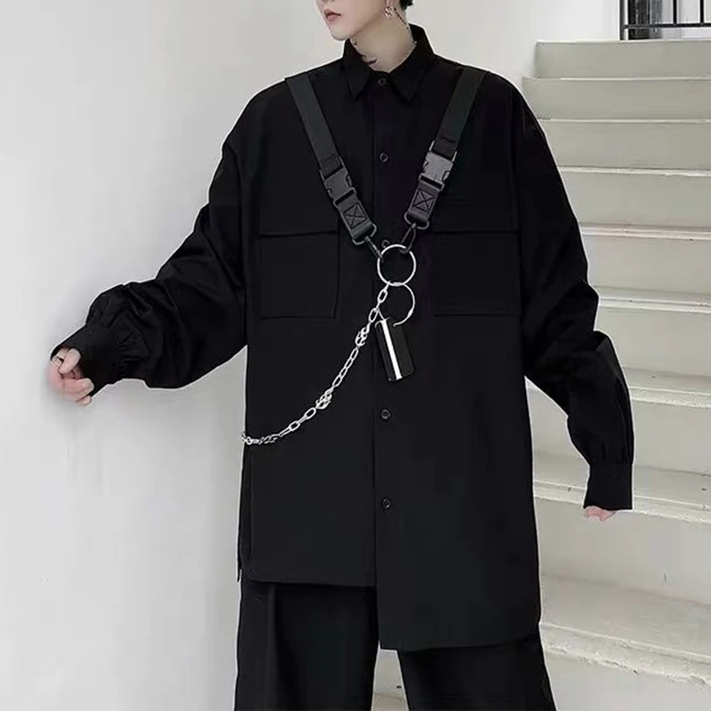 Весенне-осенняя бандажная рубашка с цепочкой, свободные брюки-карго...