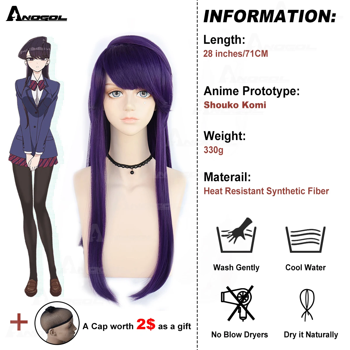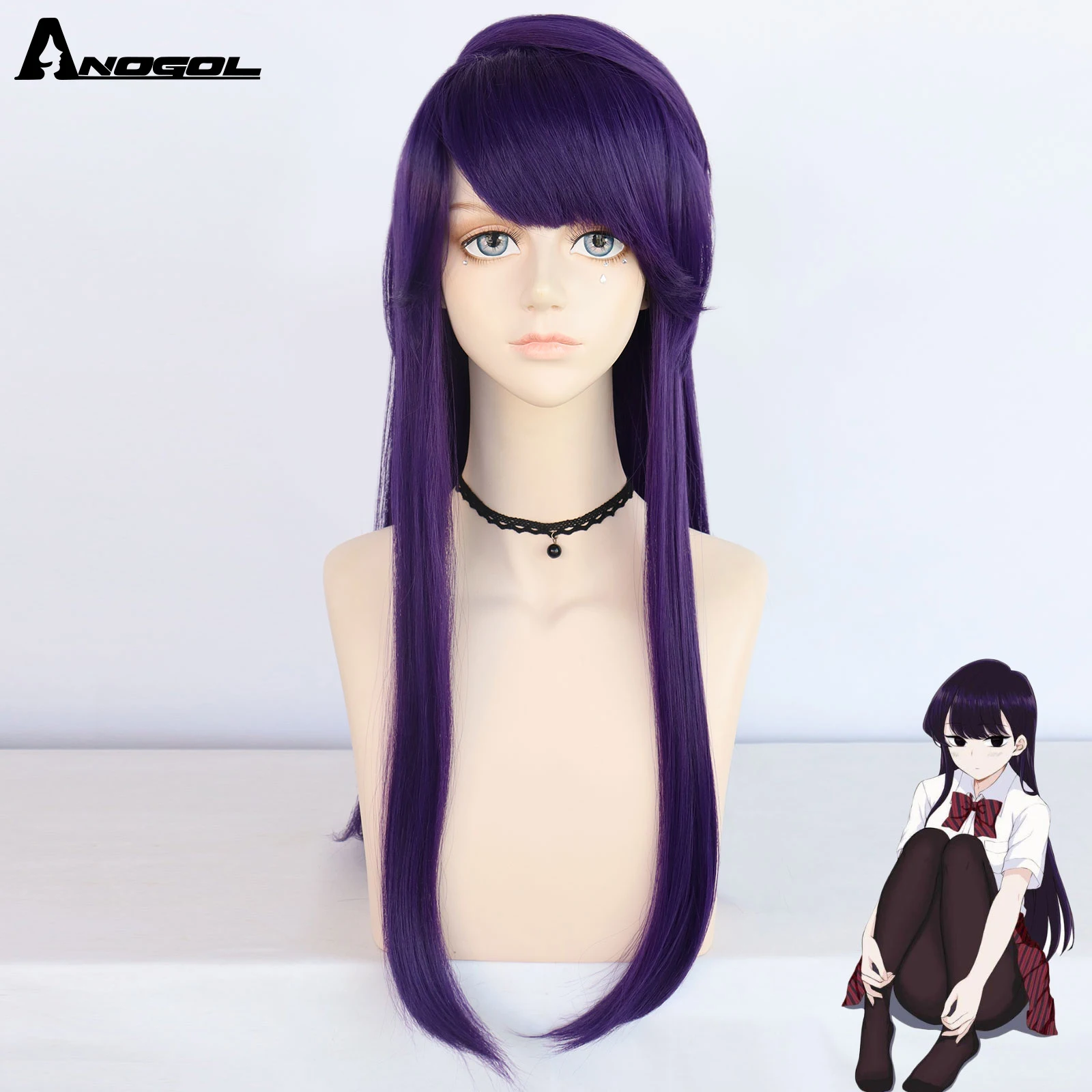 Синтетические парики Shouko Komi Cos Anmie Komi, парик для косплея, длинные фиолетовые волосы 28 дюймов с челкой, парики для женщин