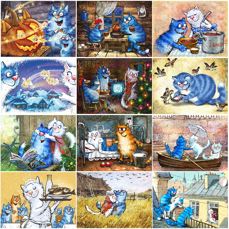 Квадратная алмазная живопись сделай сам, вышивка крестиком, вышивка с голубым и белым котом, алмазная 5D Вышивка, Алмазная мозаика, квадратные наборы, домашний декор