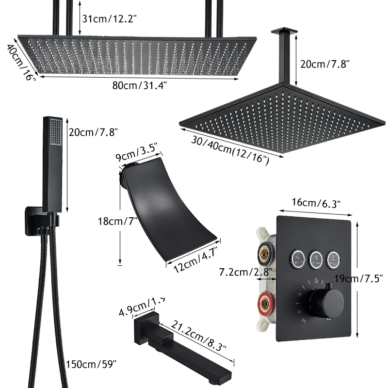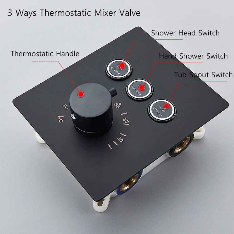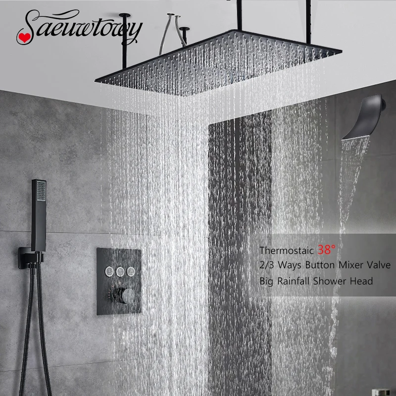 Роскошный Термостатический смеситель для душа для ванной комнаты, большая поворотная головка для Дождевого душа, носик для ванны Водопад, смеситель с 23 кнопками