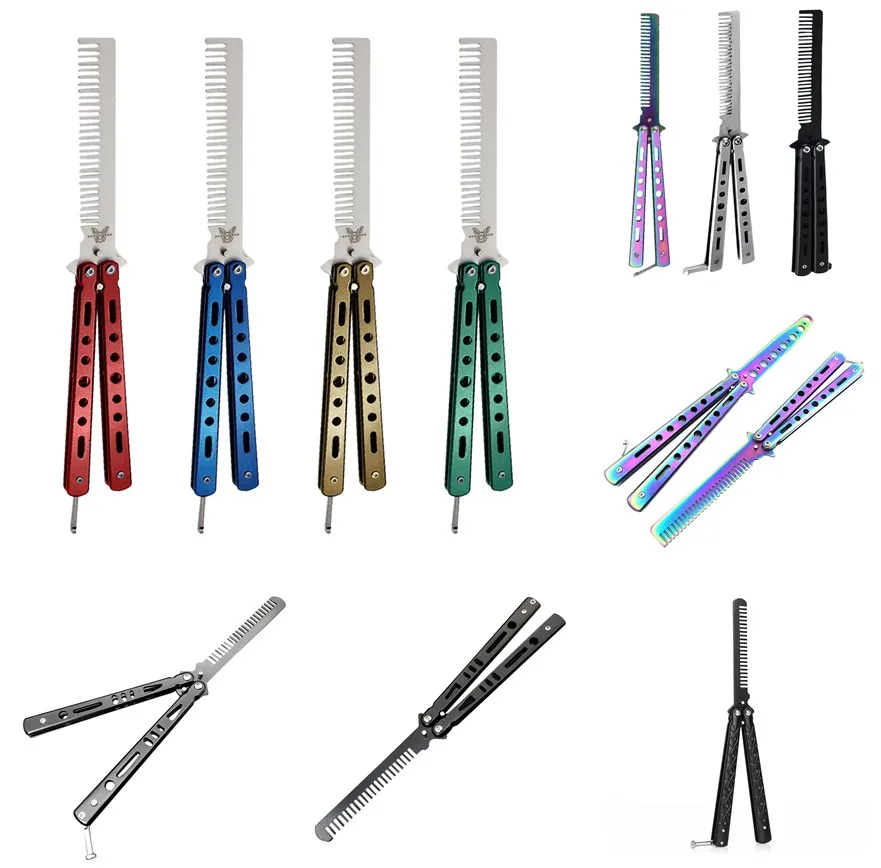 Нержавеющая сталь резак практика бабочка для начинающих обучение складной нож для кемпинга парикмахерская расческа инструмент