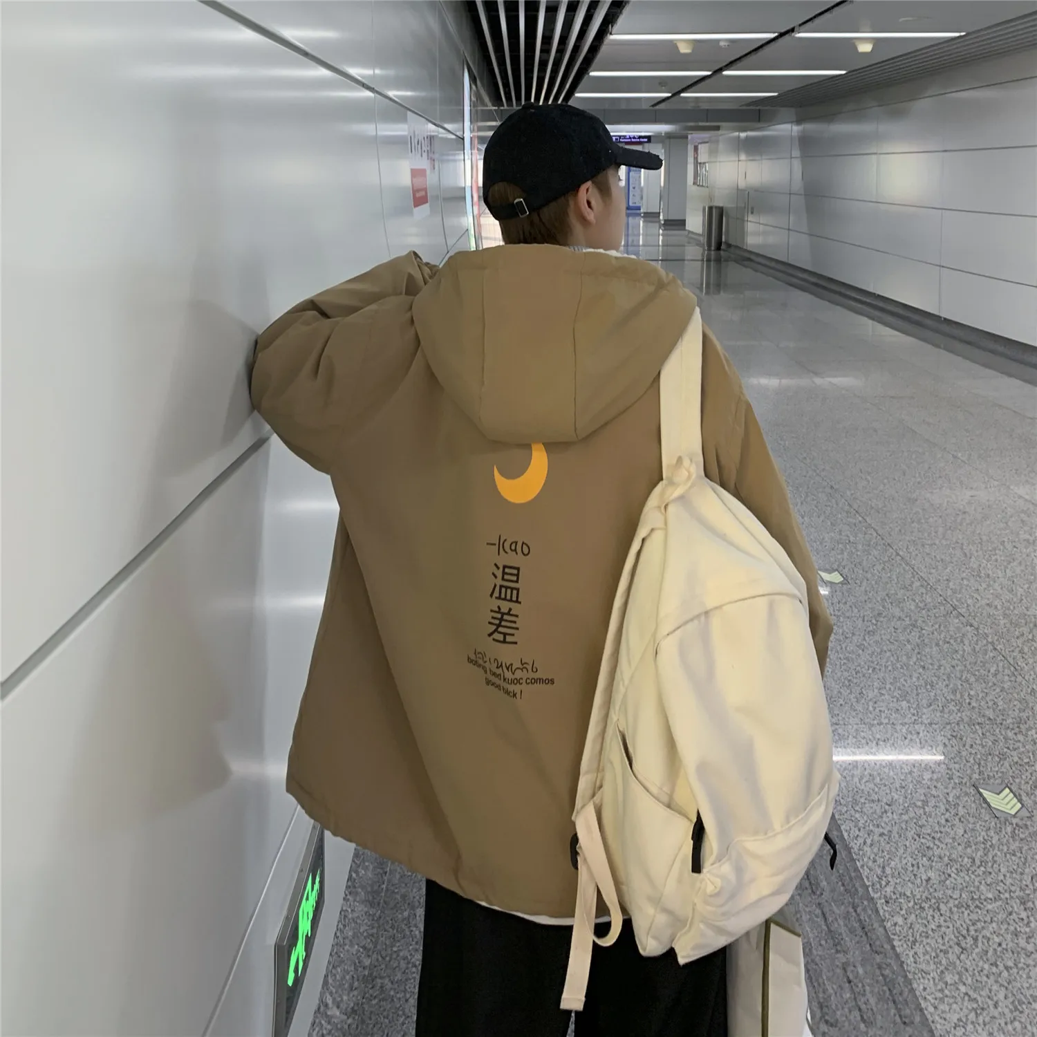 Куртка мужская демисезонная с капюшоном, однотонная, в стиле хип-хоп