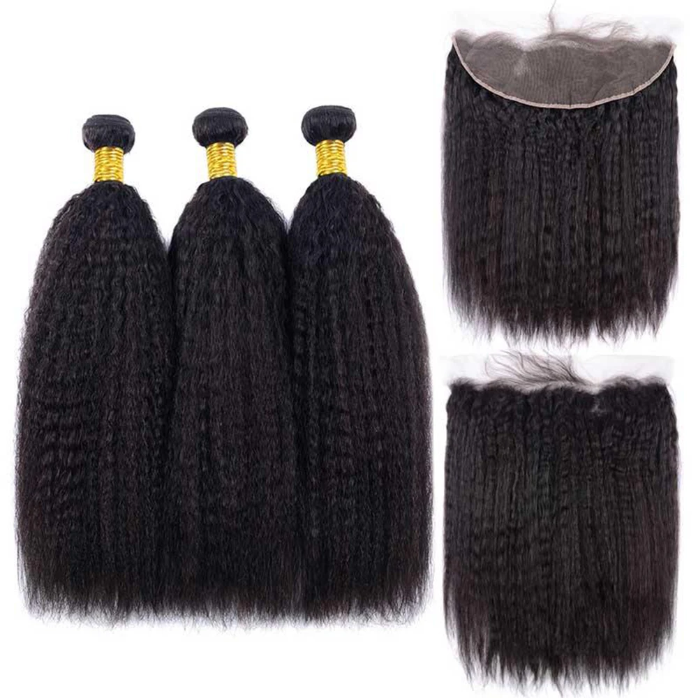 Hair Sytlekinky Straight Human Hair Bundles With Lace Frontal