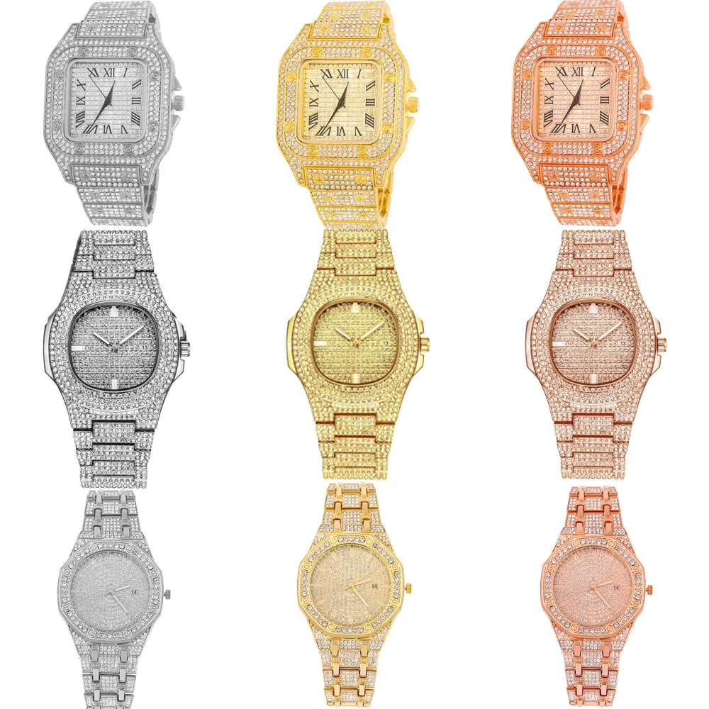 Мужские кварцевые часы в стиле хип-хоп, со стразами