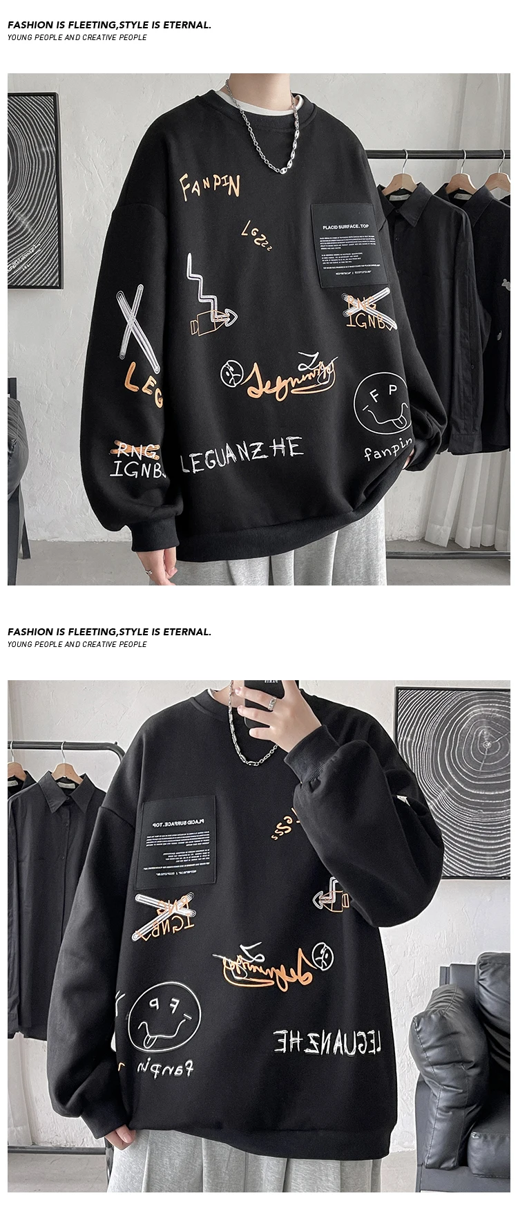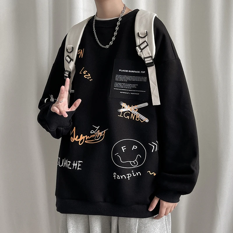 Мужские свободные толстовки с круглым вырезом, в стиле Харадзюку