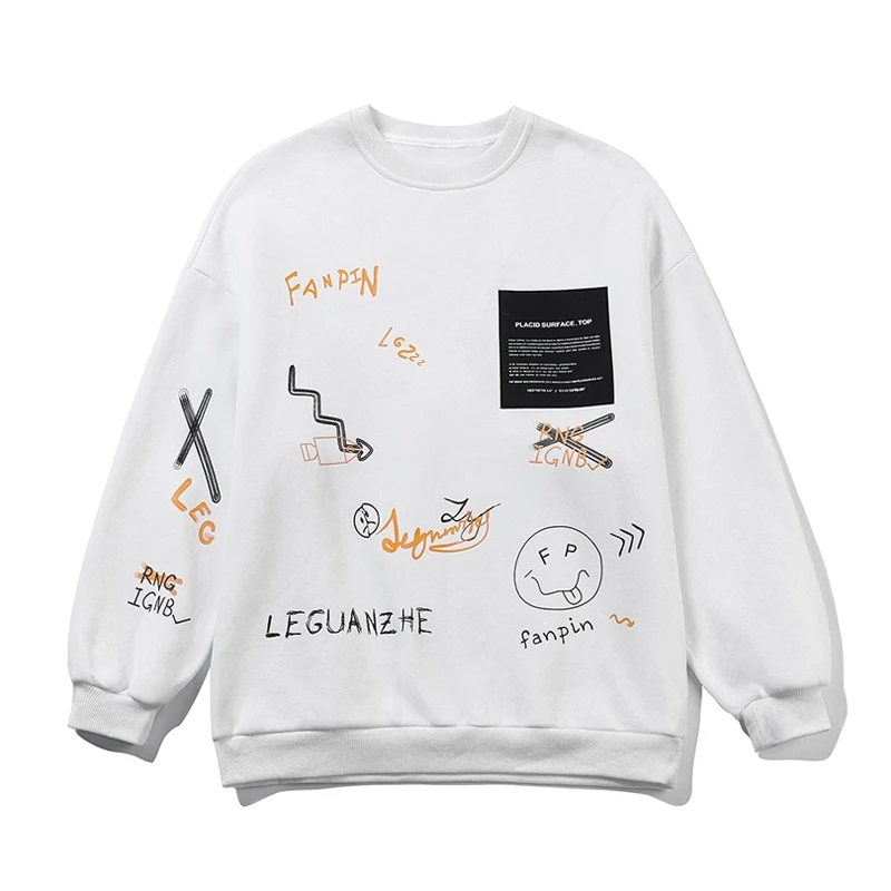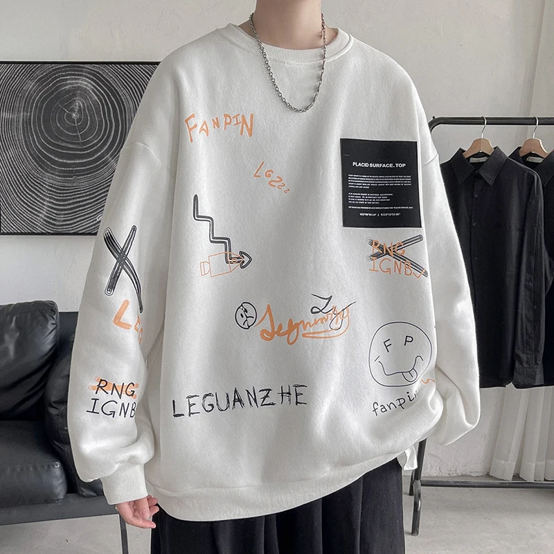 Свитшот в стиле оверсайз с граффити для мужчин и женщин, Модный пул...