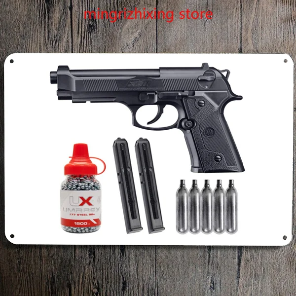 Beretta Elite II .177 Калибр 19rds CO2 полуавтоматический пневматический пистолет черный с Wearable4U комплект металлический настенный знак