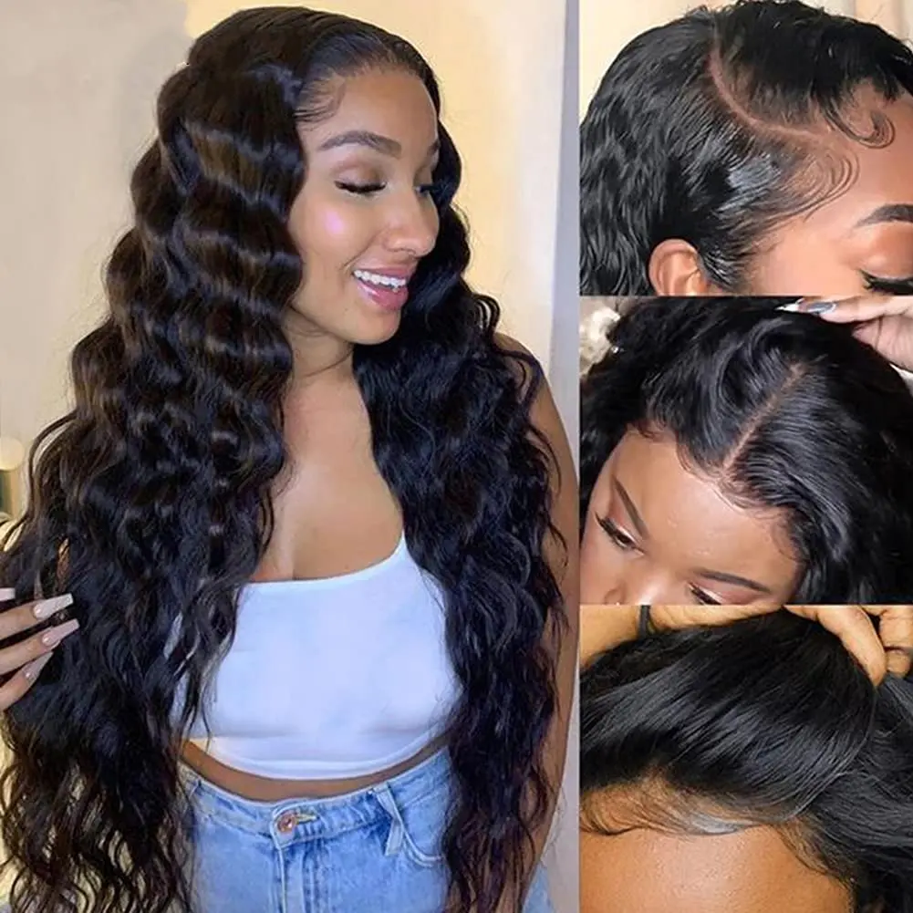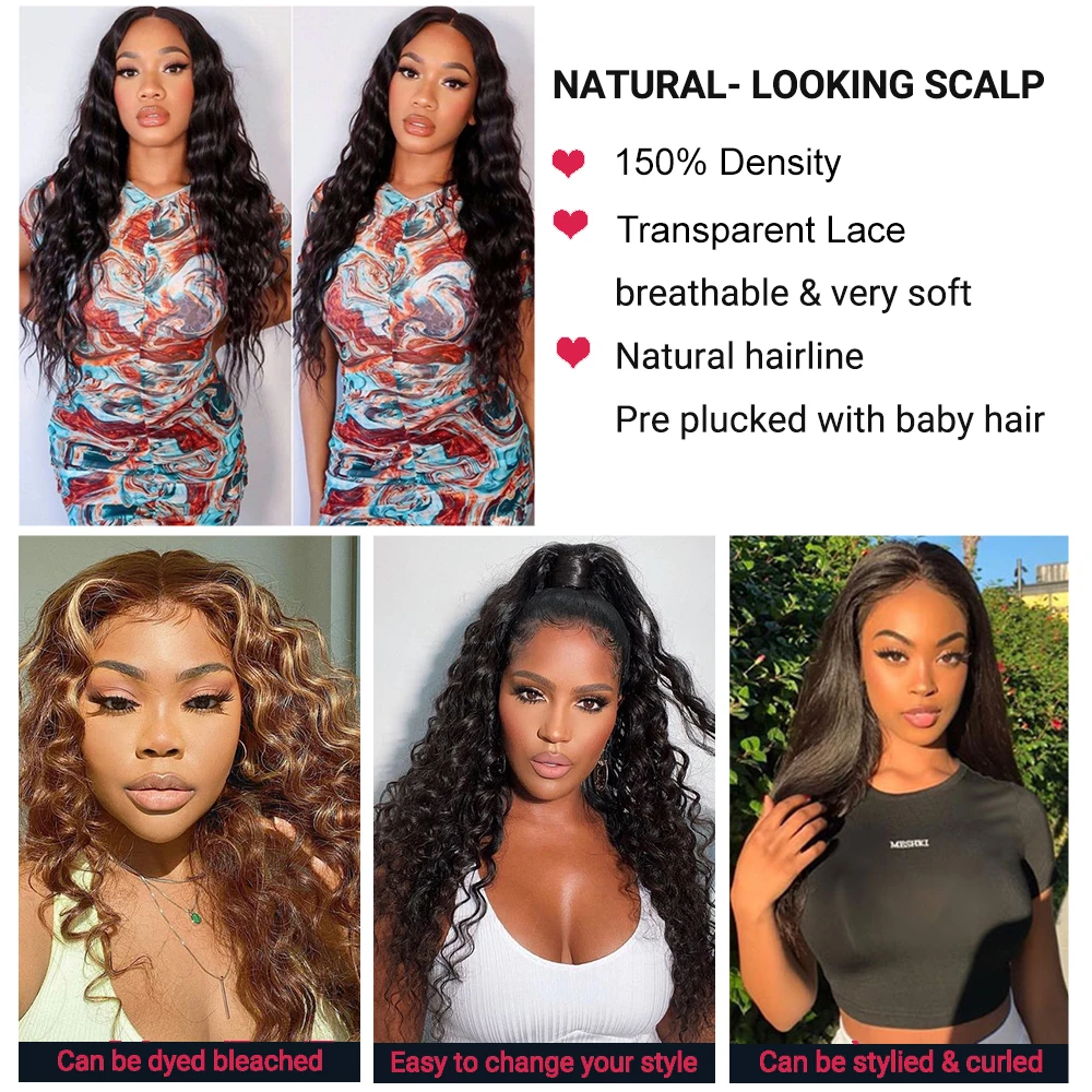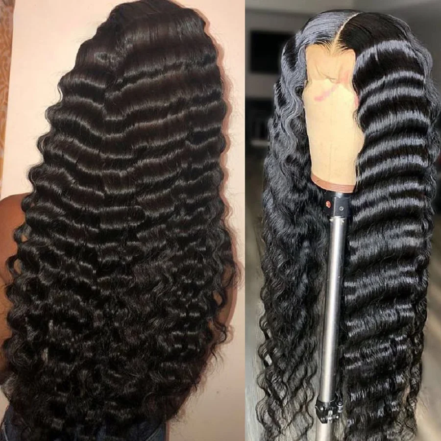 Свободный парик с глубокой волной 4x4, парики из человеческих волос с прозрачной застежкой на сетке для женщин, малазийские парики с 150 плотностью и глубокой кудрявой человеческий парик