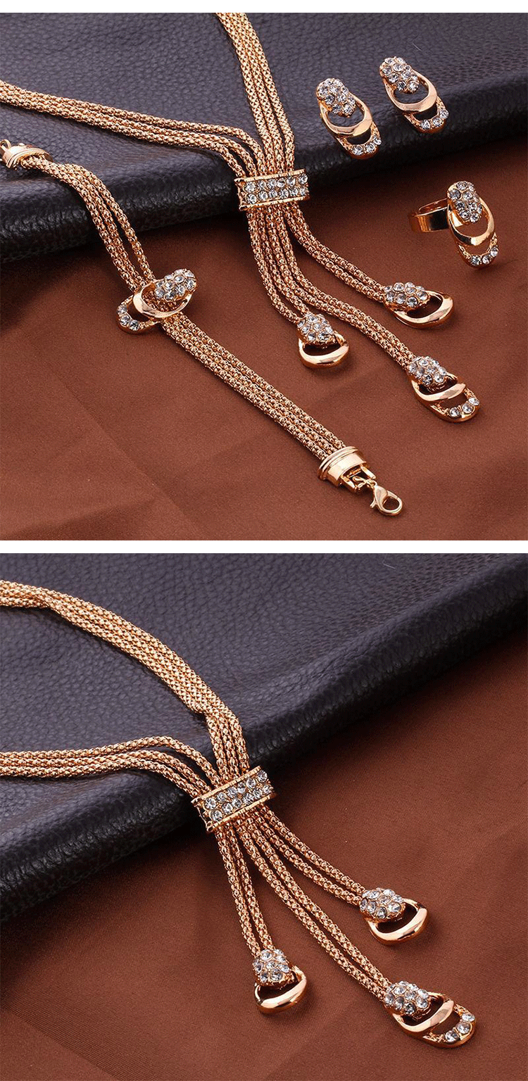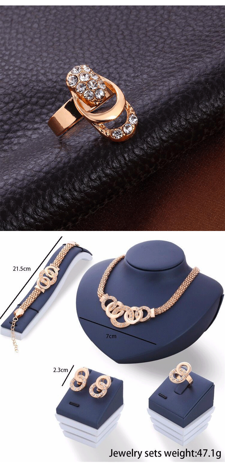 4 шт.компл. Золотое хрустальное ожерелье браслет кольцо серьги Модн...