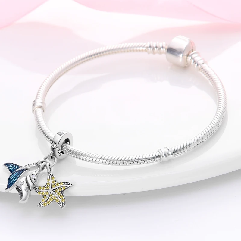 Серебряные бусины-шармы рыбий хвост в виде раковины и морской звезды, подходят для оригинального браслета Pandach, женские серебряные подвески, ювелирные изделия сделай сам