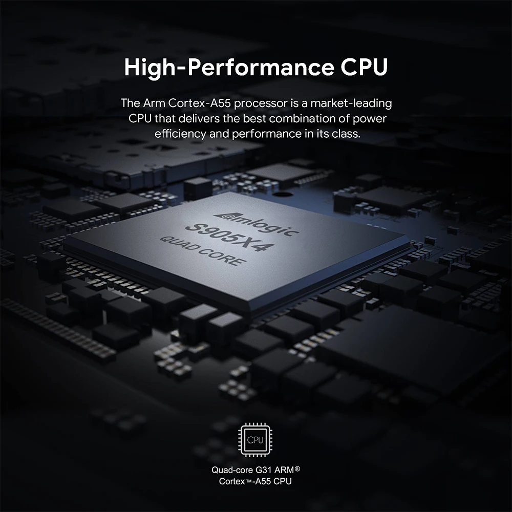 -CPU: четырехъядерный процессор Amlogic S905X4 ARM Cortex-A55