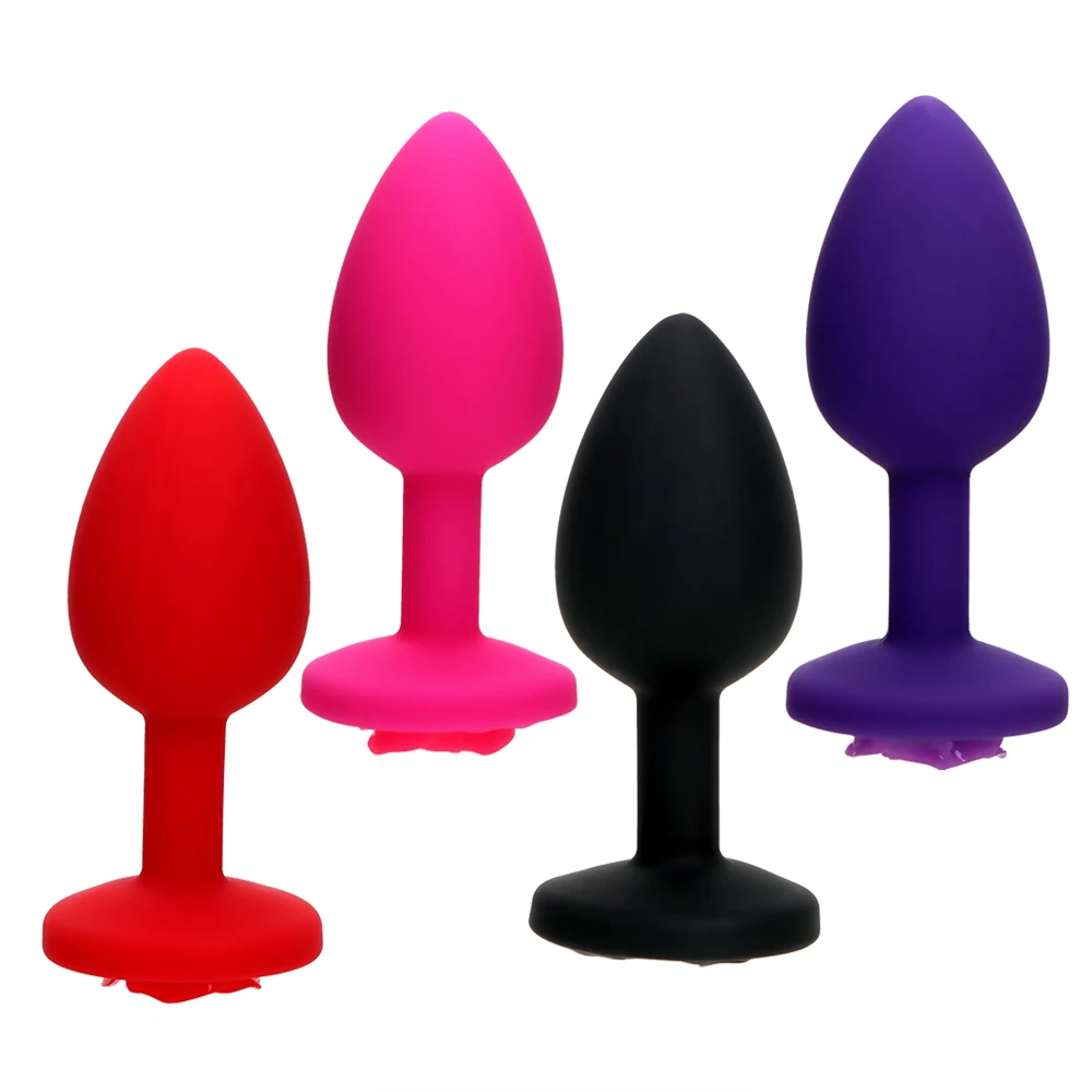 Силиконовая Анальная пробка, 4 цвета, роза, цветок, Анальная пробка, интимные игрушки, товары для секса
