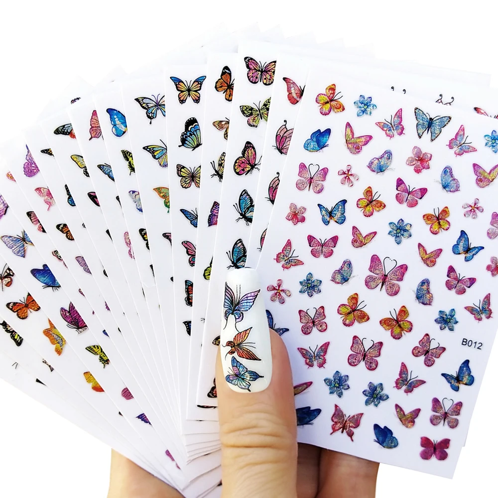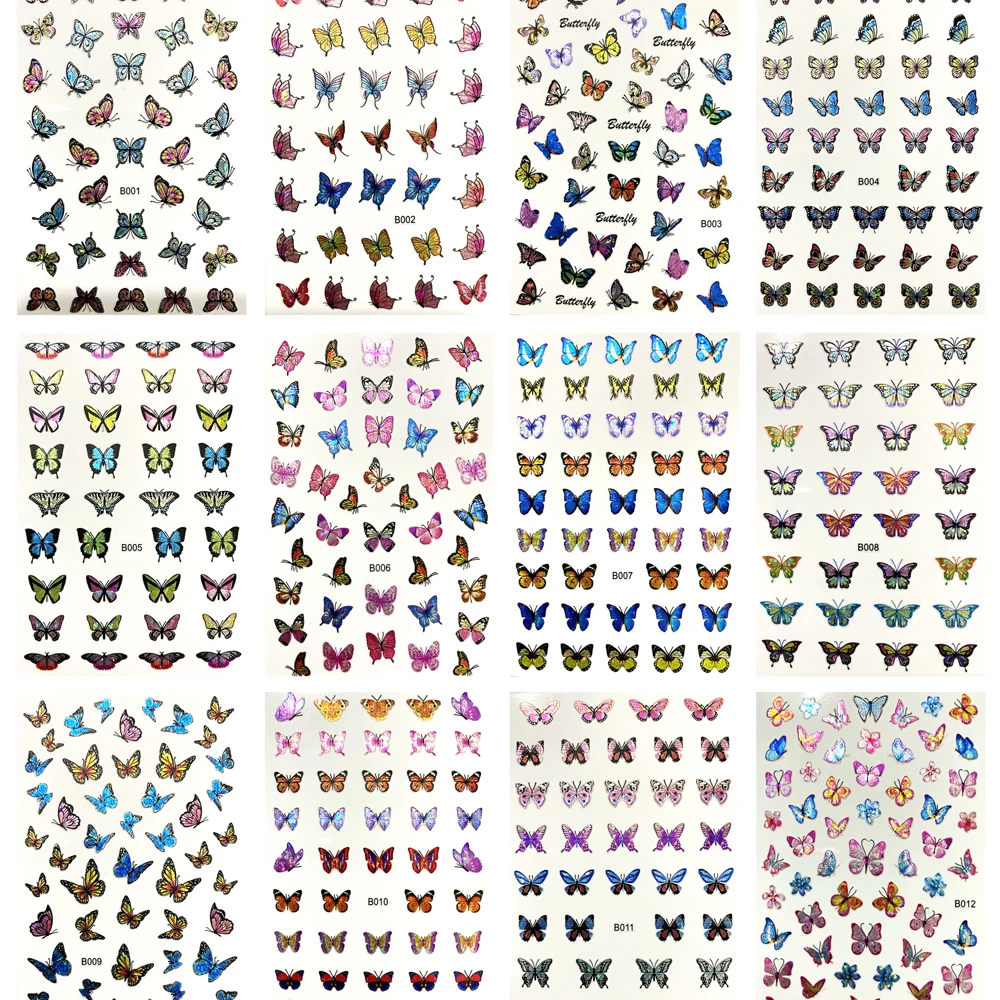 12 шт.компл. мульти-стиль стикер для дизайна ногтей 3D лазерная бабочка клейкая наклейка украшение Feastival серии слайдер маникюрное украшение B4