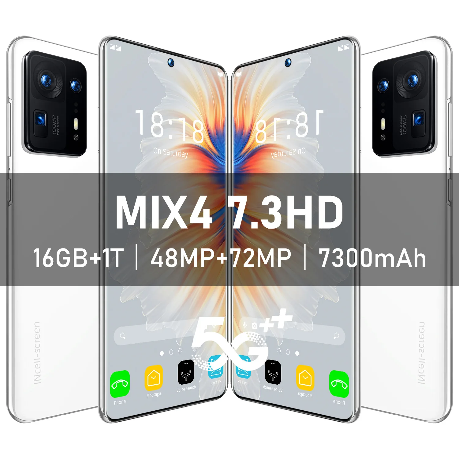 100% оригинальный смартфон MIX4, 7,3 дюйма, 16 ГБ + 1 ТБ, Android 12, глобальная версия 4Gмобильный телефон, большой экран 48 Мп + 72 МП HD