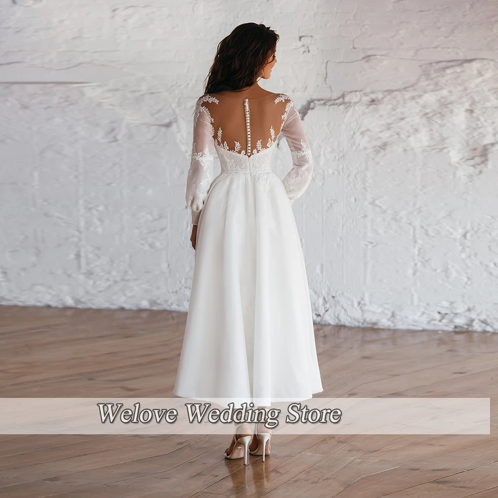 Женское свадебное платье до щиколотки, белое платье с длинными рукавами и пуговицами на спине для помолвки