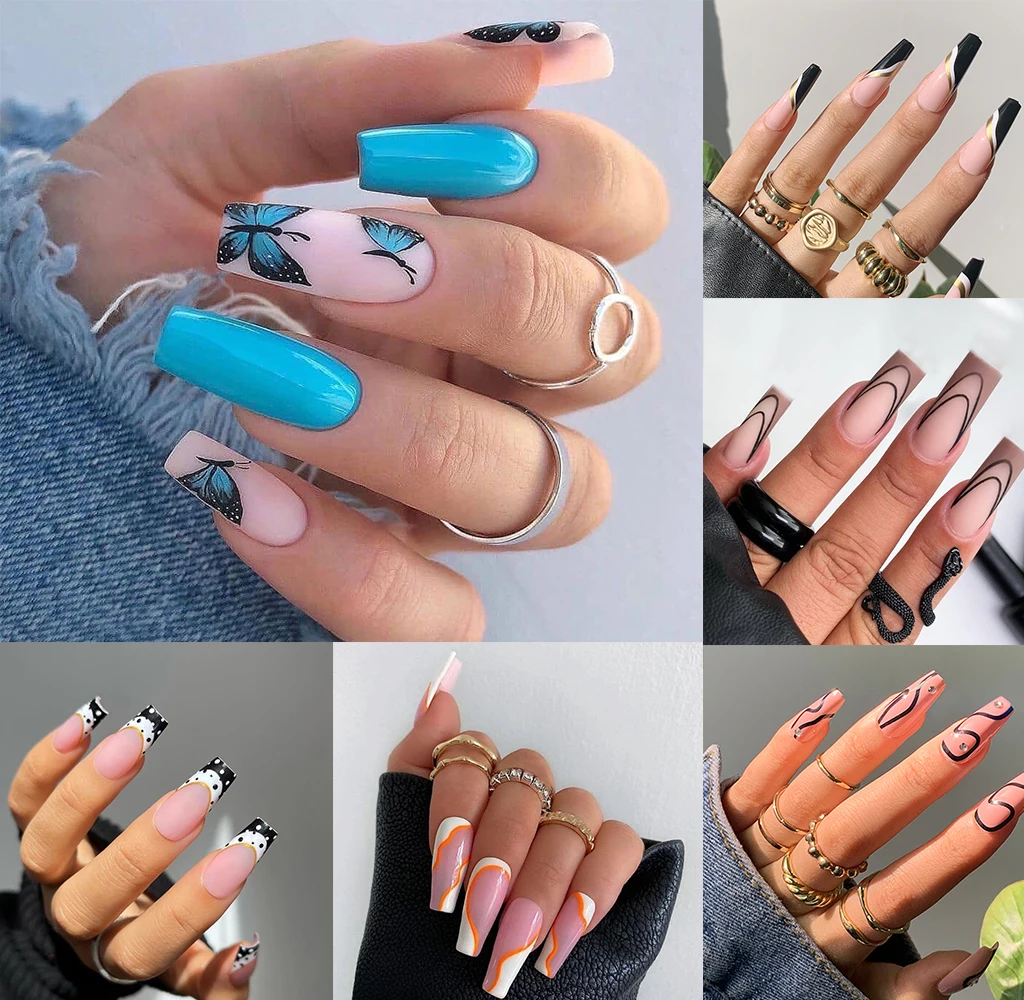 Длинные гвозди, накладные ногти сделай сам, французские балерины, накладные ногти с полным покрытием для женщин, накладные ногти с клеем, искусственные ногти