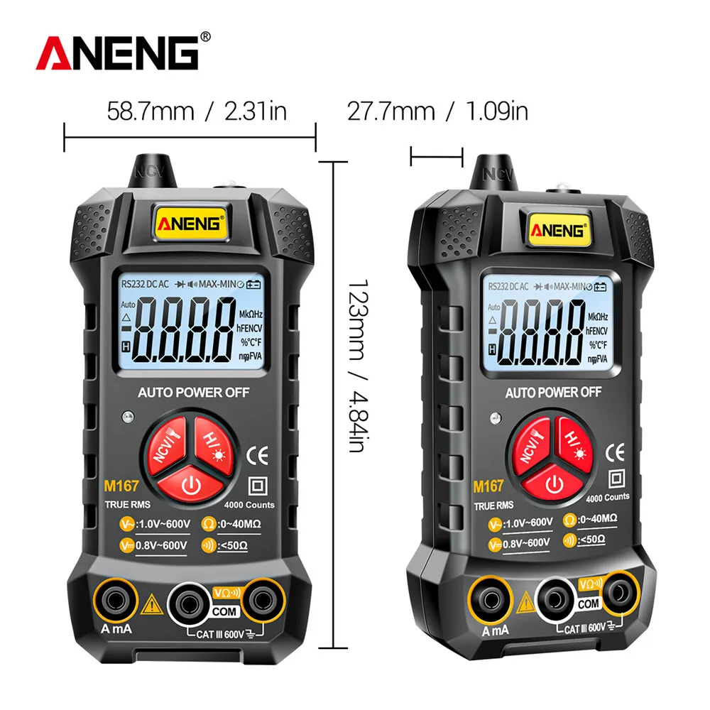 Умный Цифровой мультиметр ANENG M167 с автоматическим распознаванием, 4000 отсчетов, вольтметр, амперметр, Электрический тестовый ручка, ЖК-экран с подсветкой