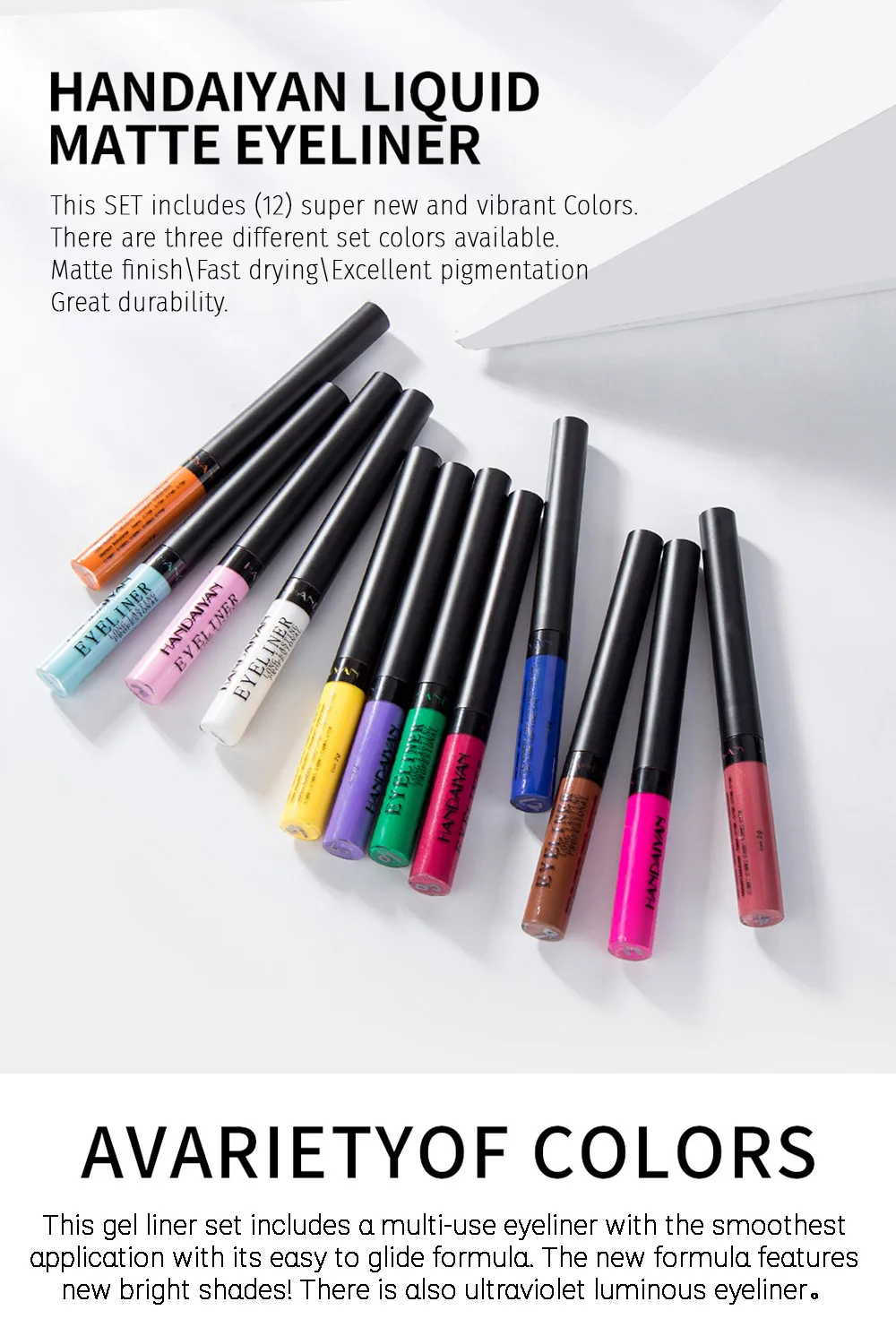 Новинка, набор матовой подводки для глаз 12 цветов, водостойкая цветная подводка для глаз, ручка, модная женская косметика, набор флуоресцентных УФ-подводки для глаз