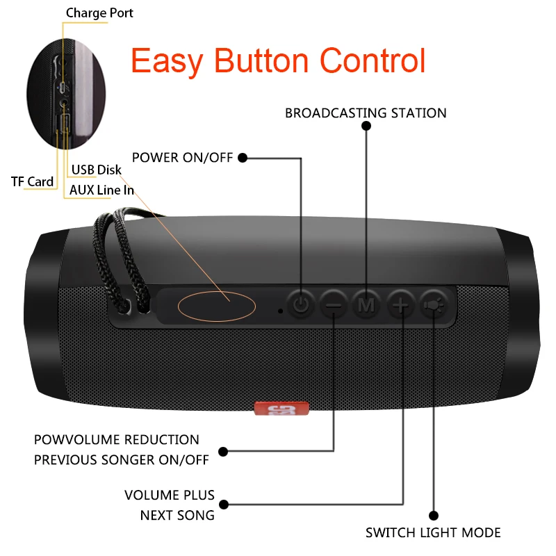 1,5 режимы воспроизведения, кроме того, совместимы с Bluetooth, AUX jack подключается от телевизоров, mp3, mp4 и не имеющими Блютуз устройствами с 3,5 мм Шнур для идеальную линию динамик; 2. Поддержка tf-карты (карта памяти) до 32G, поддержка USB диска plug and play. 3. Кроме того, он также поддерживает fm-радио, помогает вам организовать радиостанцию.