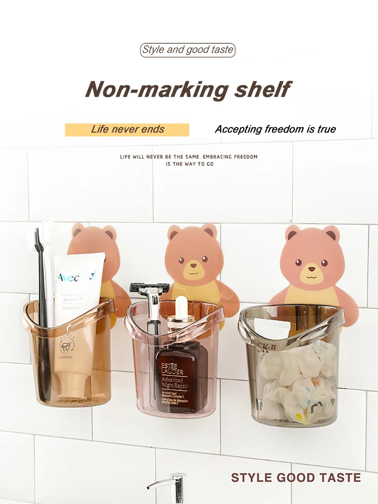 Настенный держатель для зубных щеток в форме медведя, органайзер дл...