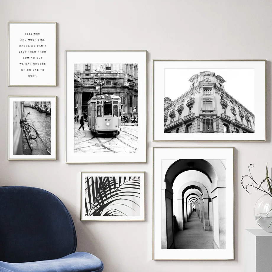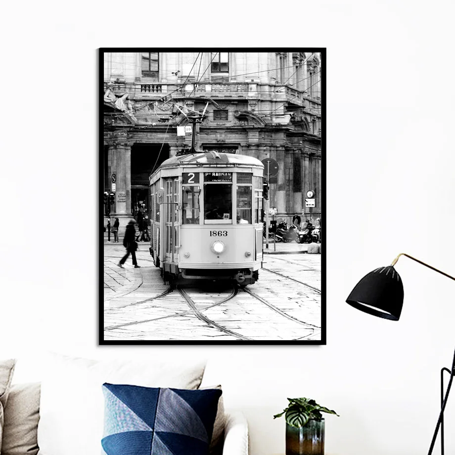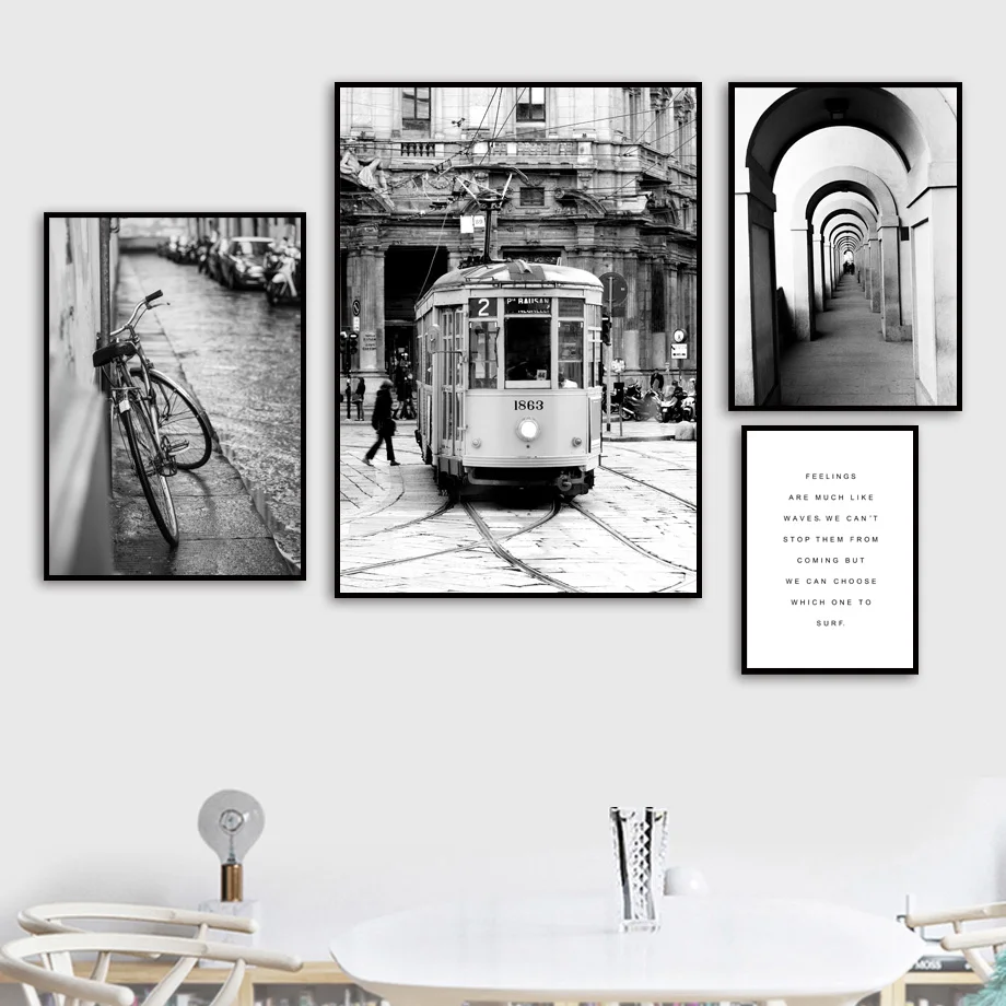 Настенные картины с изображением Парижа автобуса церкви велосипеда листьев на холсте черные белые скандинавские плакаты и принты настенные картины для декора гостиной