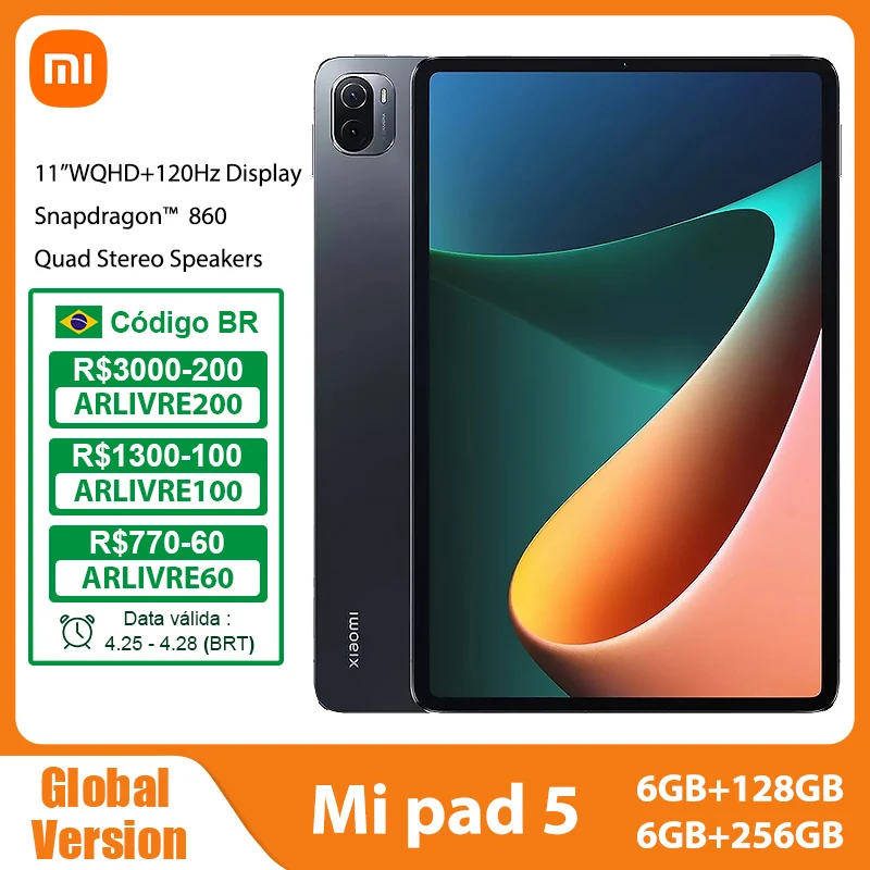 Смартфон Xiaomi Pad 5, 11 дюймов, WQHD + дисплей 120 Гц, Snapdragon 860, 4 стереодинамика, 6 ГБ, 128 ГБ, 8720 мАч, 22,5 Вт, быстрая зарядка, MiPad 5