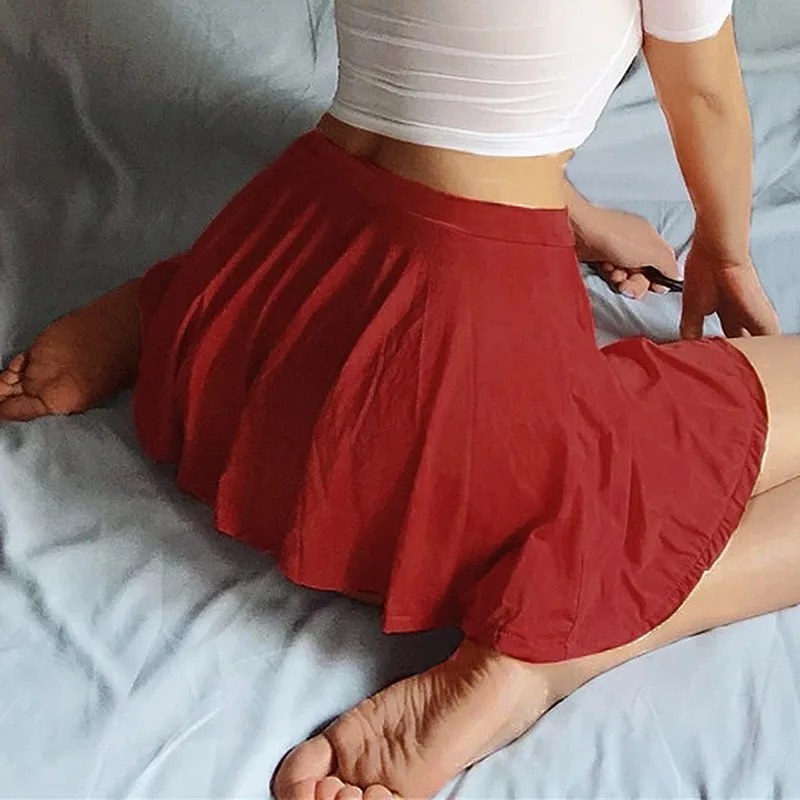Соблазнительная Женская теннисная юбка с завышенной талией, однотон...