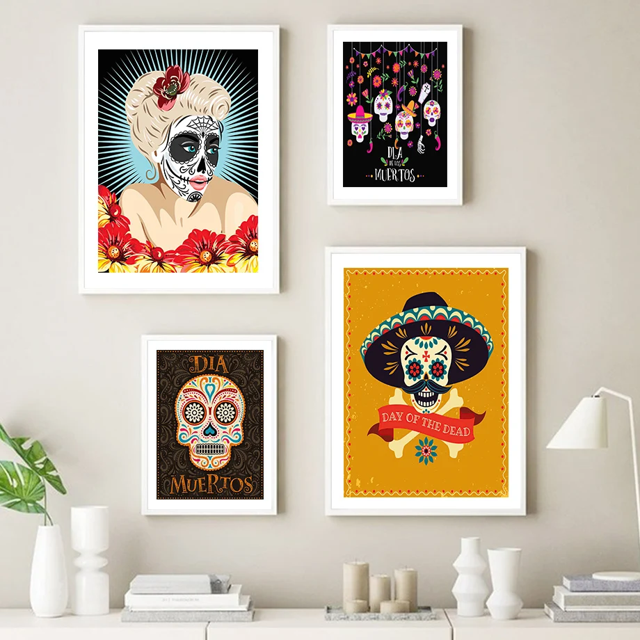 Картина на холсте Мексиканский День мертвых, готический череп, скан...