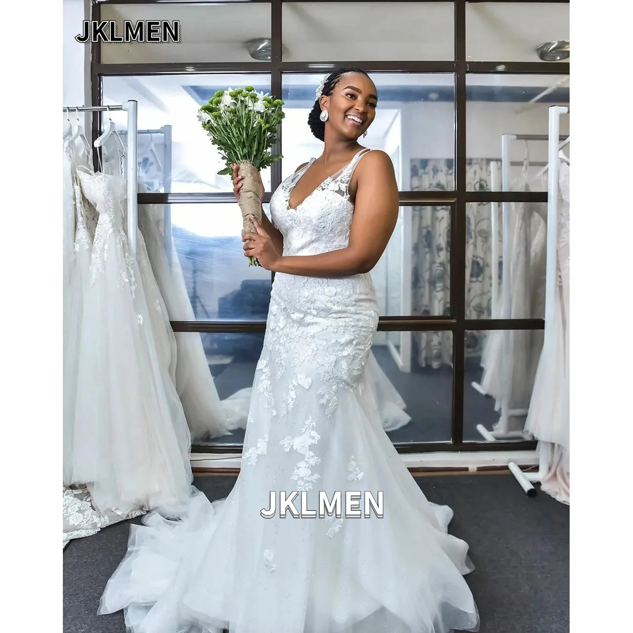 Кружевное Элегантное свадебное платье с аппликацией и юбкой-годе, свадебное платье с V-образным вырезом и шнуровкой сзади из тюля, индивидуальный пошив, большие размеры
