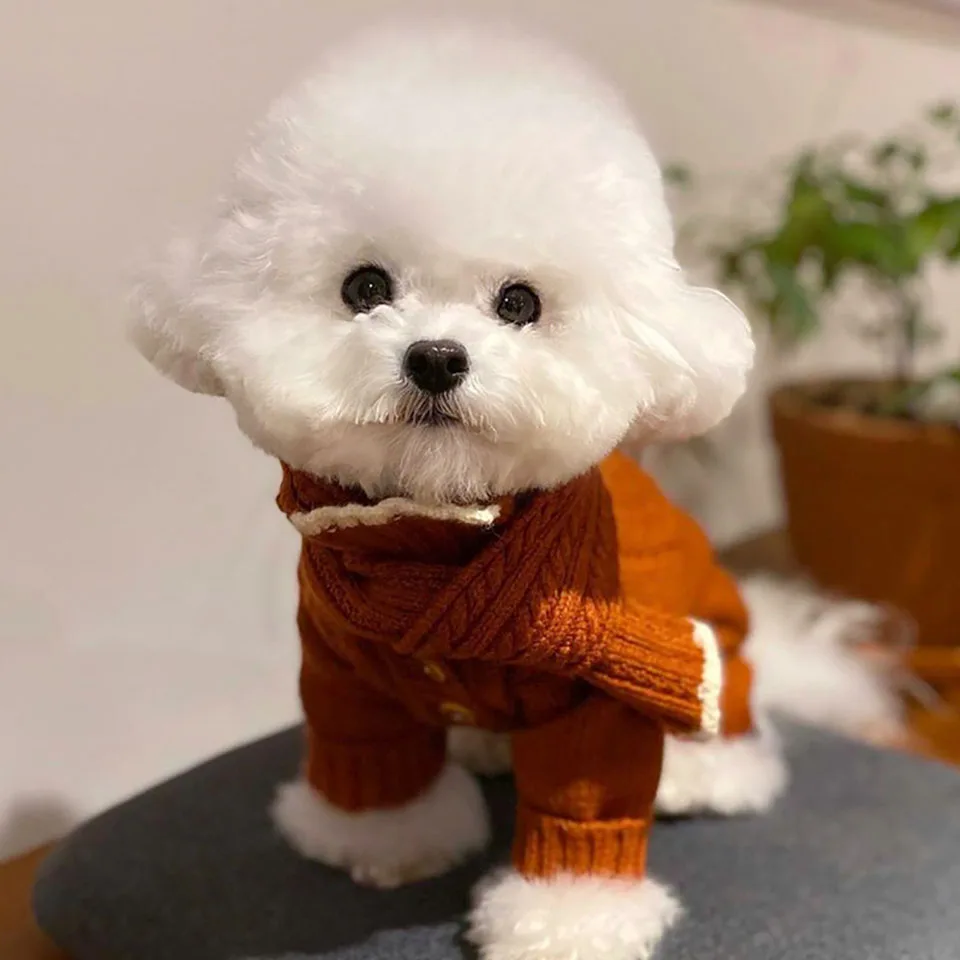 Коричневая одежда для собак, пуговицы, вязаный свитер для домашних животных, Bichon, Однотонная рубашка, пудель, осенняя и зимняя одежда, щенок Pullove