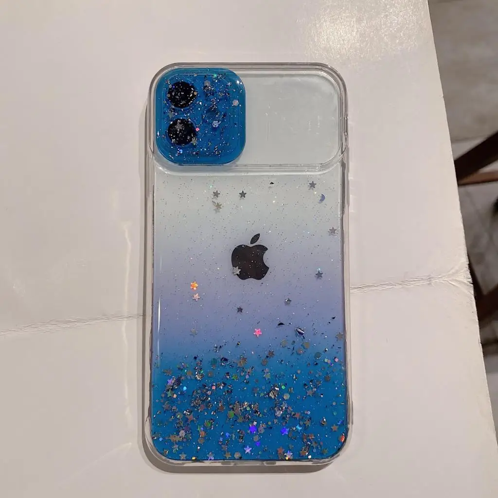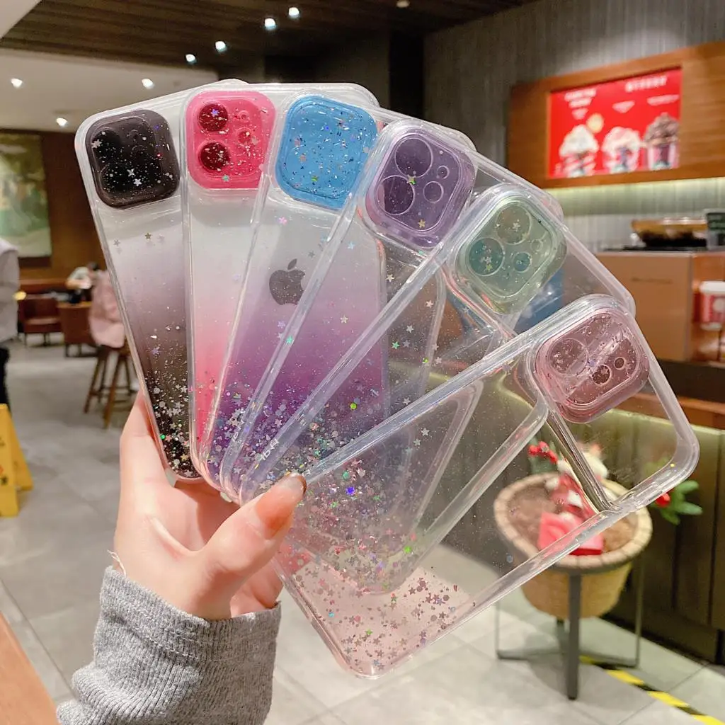Прозрачный мягкий чехол с градиентом и блестками для защиты камеры,...