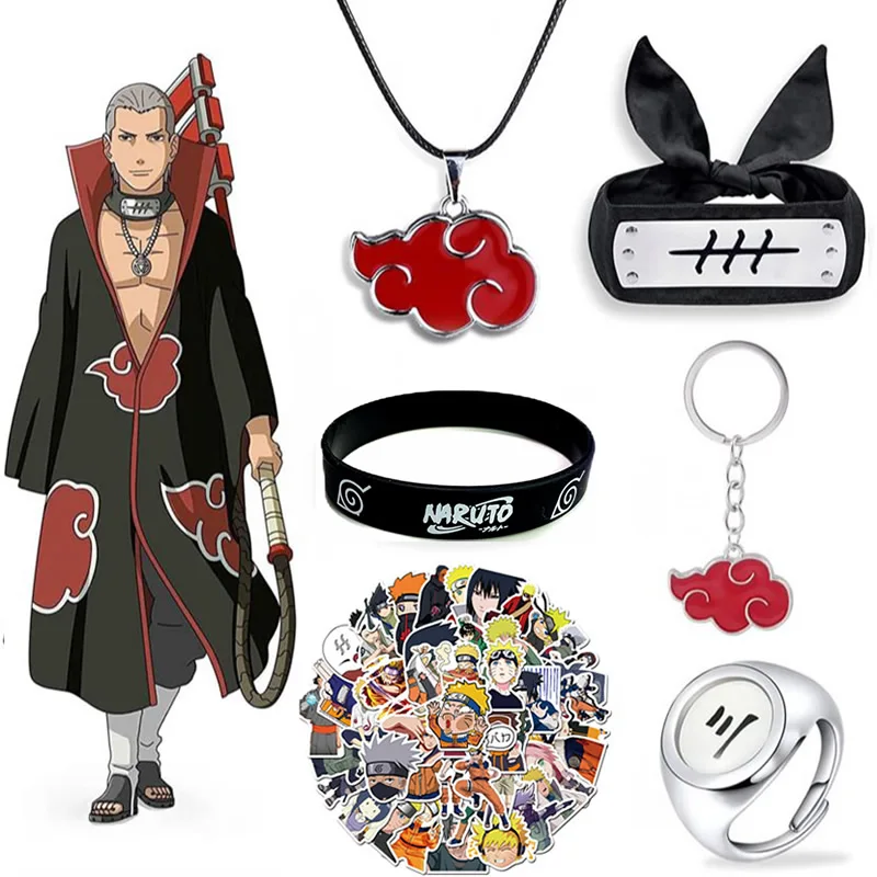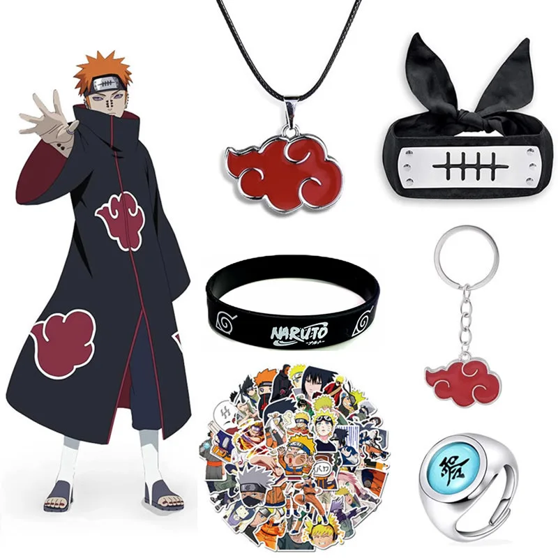 Аксессуары для косплея аниме Наруто Акацуки, 6 шт., повязка на голову, кольцо, кольцо, набор брелоков, экшн-фигурка, детская игрушка