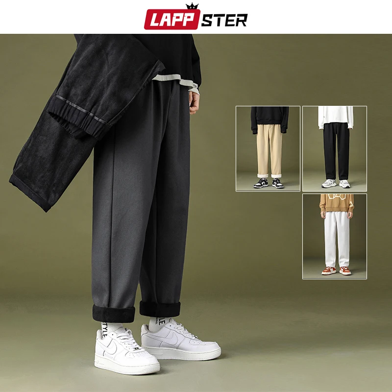 Мужские Мешковатые флисовые брюки-джоггеры LAPPSTER, одежда 2022, мужские однотонные спортивные брюки в стиле Харадзюку, мужские модные черные брюки от пота в японском стиле