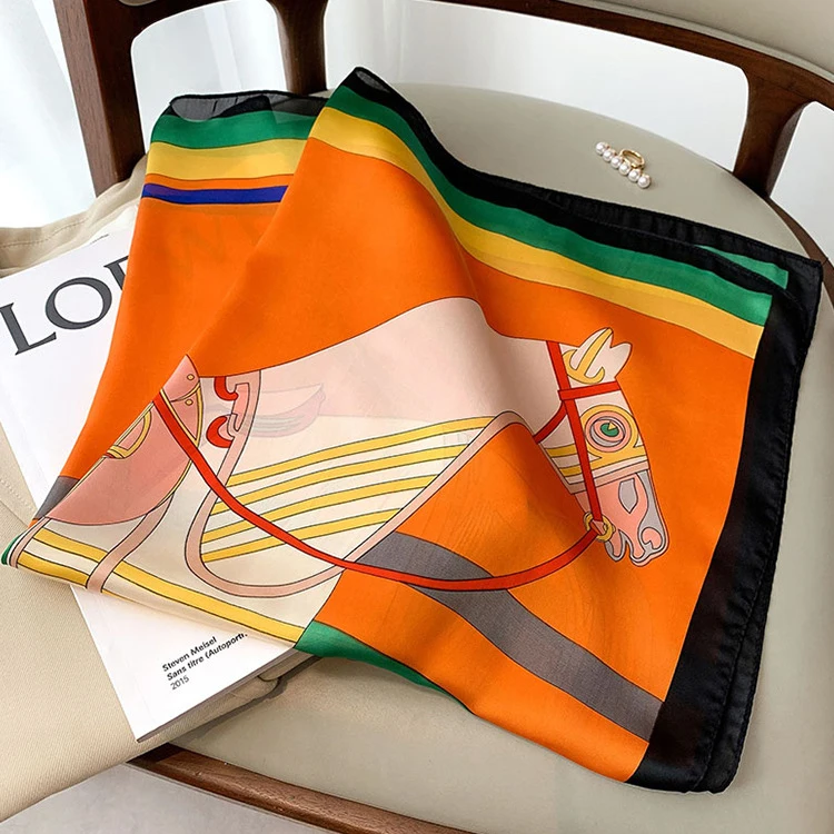 Весенняя шелковая квадратная бандана, шарф, дизайнерские маленькие шали и палантины с принтом лошадей, повязка на голову, платок, шарфы, шейный платок Bufanda